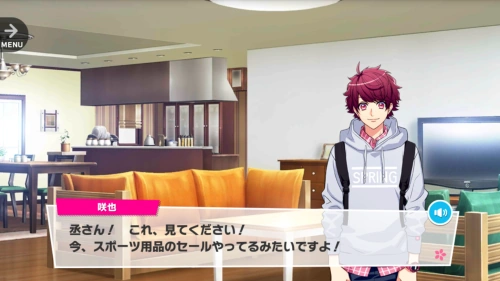 | Sakuya: | Tasuku, look at this! They’re having a sale on athletic wear! |