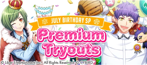 Premium Tryouts is the second gacha in the Tryouts Tab. Unlike Limited Time Tryouts, the Premium Tryouts are permanent, but each month, have two to three special SSR birthday cards of the actors in their corresponding responding birthday months. The gacha takes